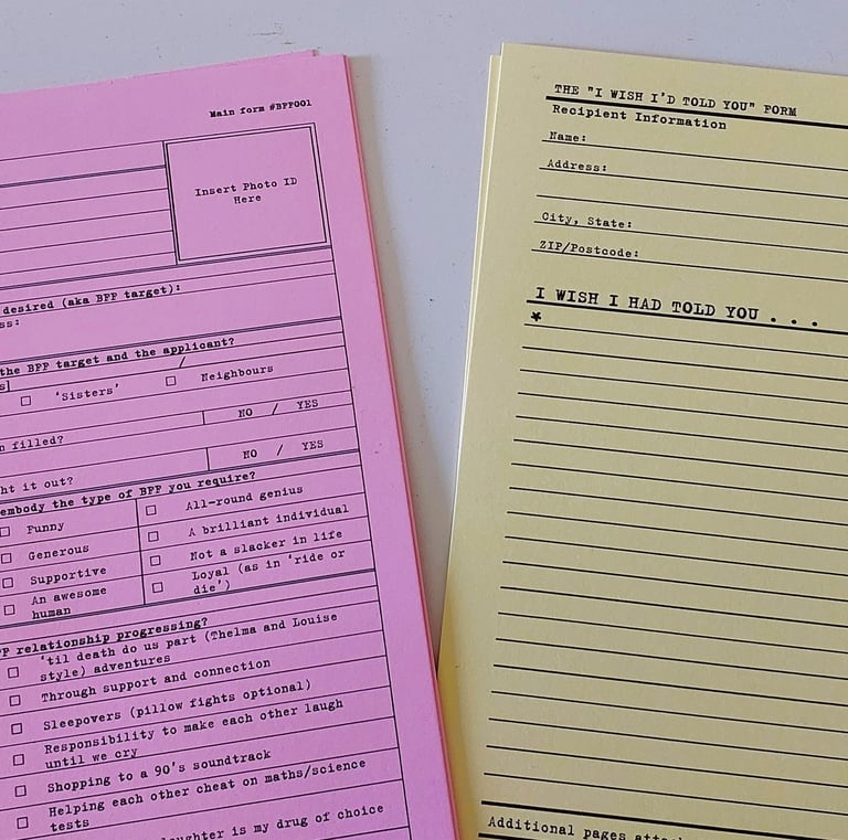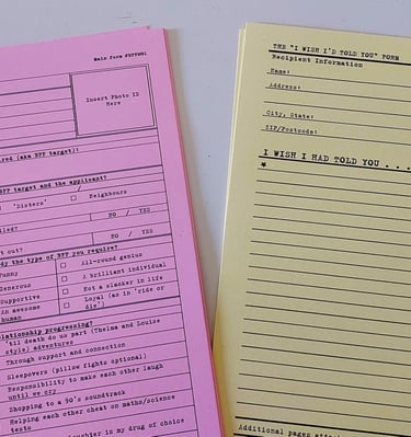 This book is filled with writing stationery paper. It has prompts/ideas for people you could write to and reasons for writing. My hope was that it inspired people to put pen to paper, put that letter in an envelope, put a stamp on it, ...AND put it in the post.